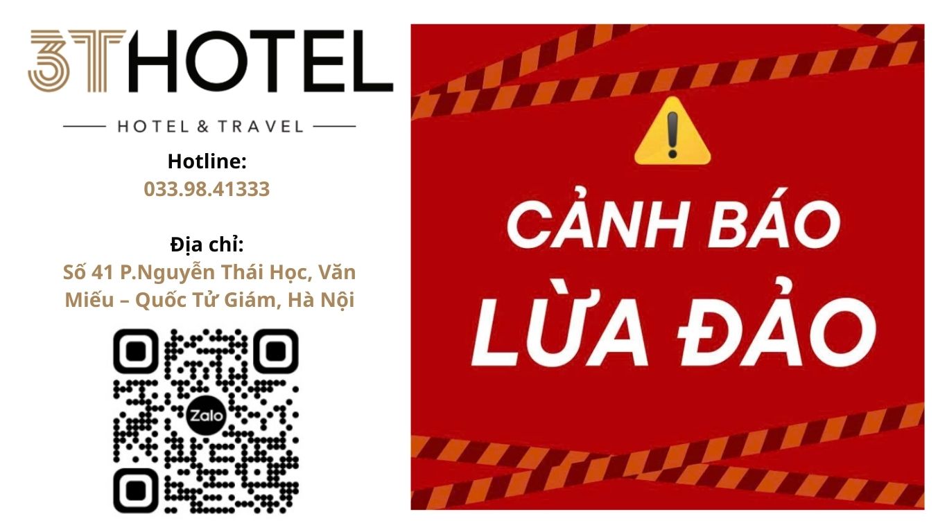 👉Nếu khách hàng đặt phòng qua các công ty du lịch, đối tác liên kết với 3T HOTEL & TRAVEL hãy gọi điện qua hotline hoặc Inbox vào fanpage để xác nhận thông tin đặt phòng trước khi chuyển tiền đặt cọc hoặc thanh toán.